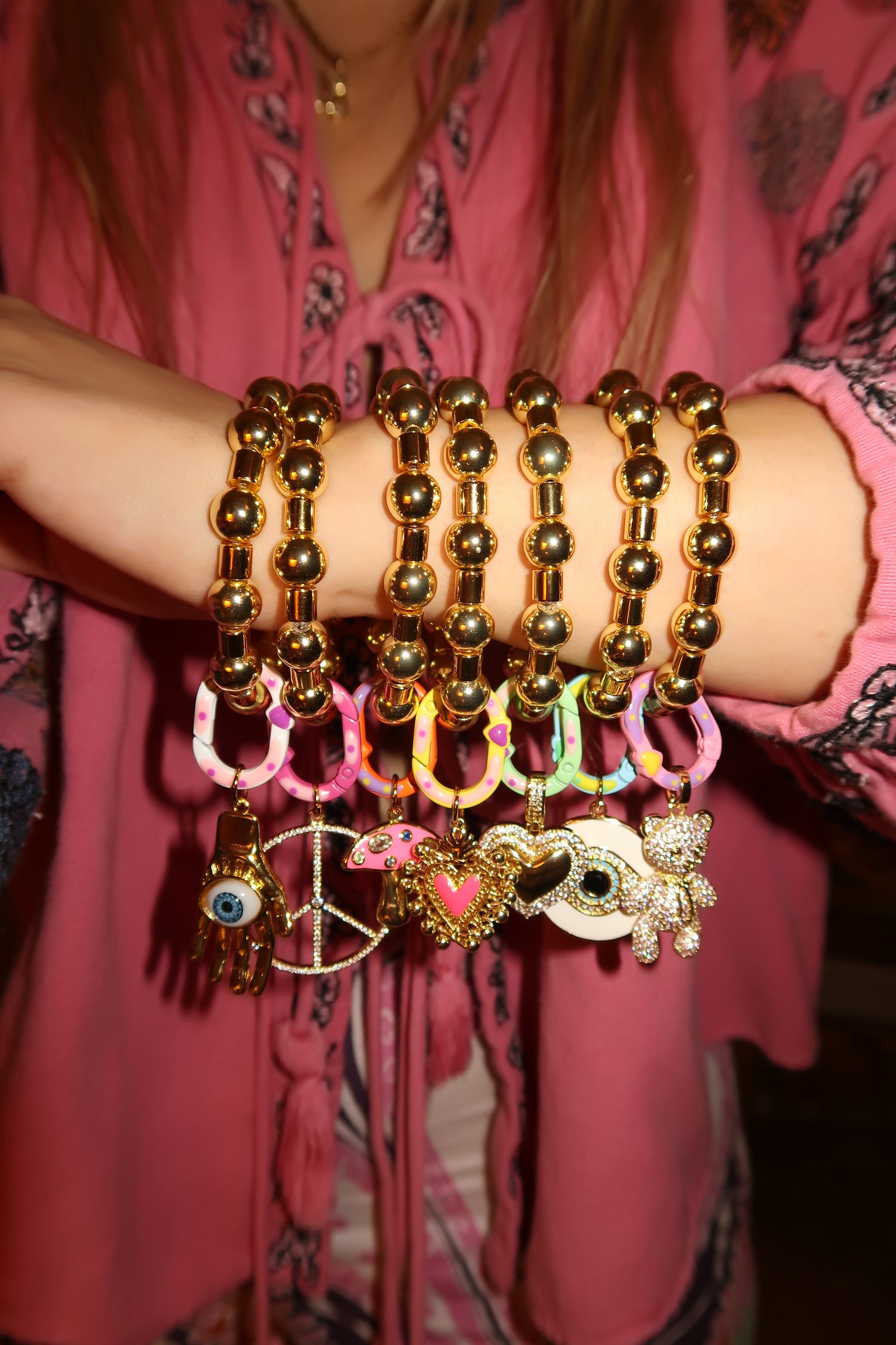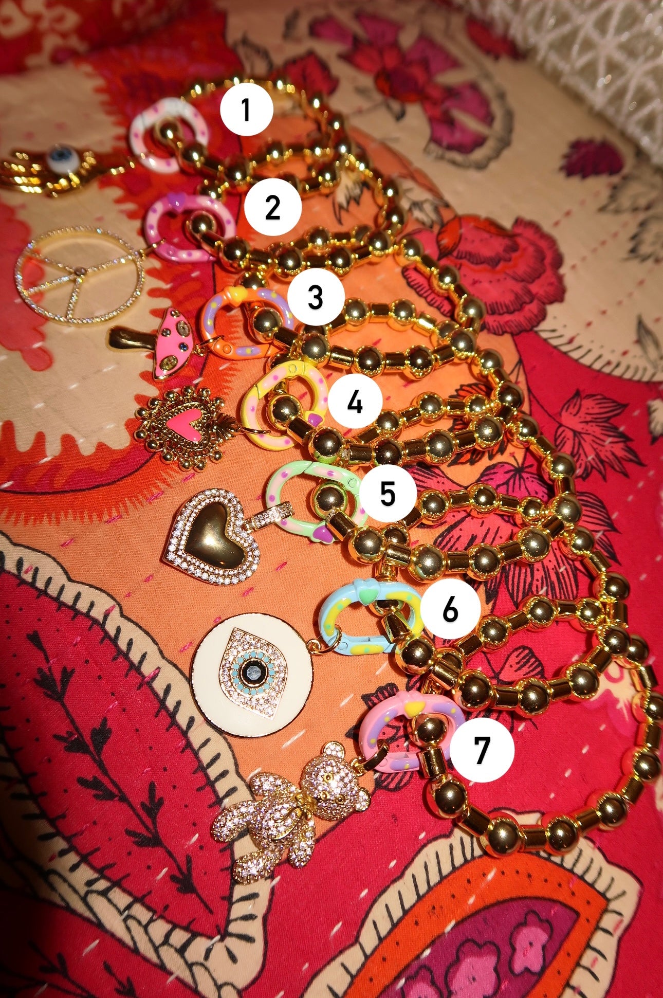 Gold Beaded Lock Charm Bracelets
